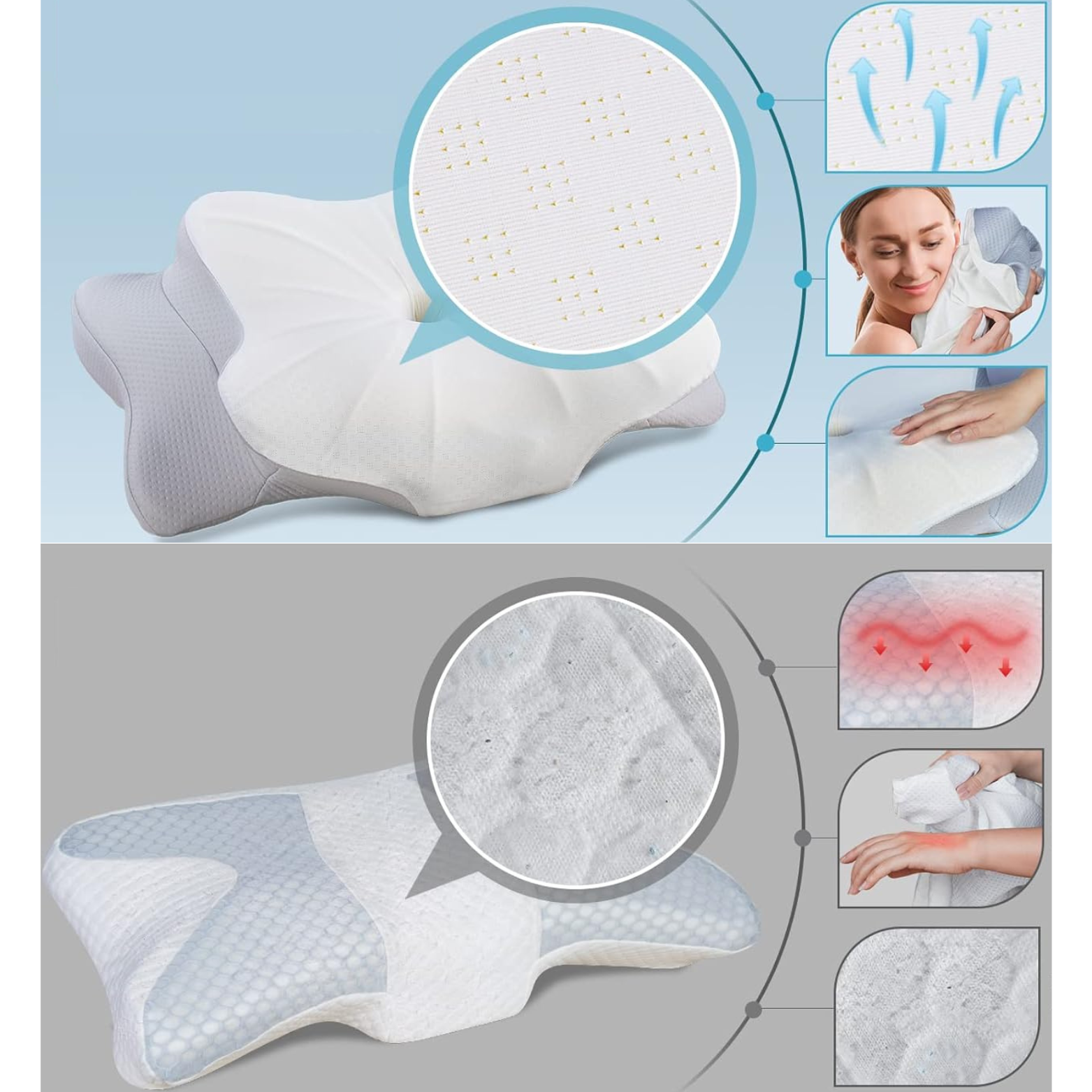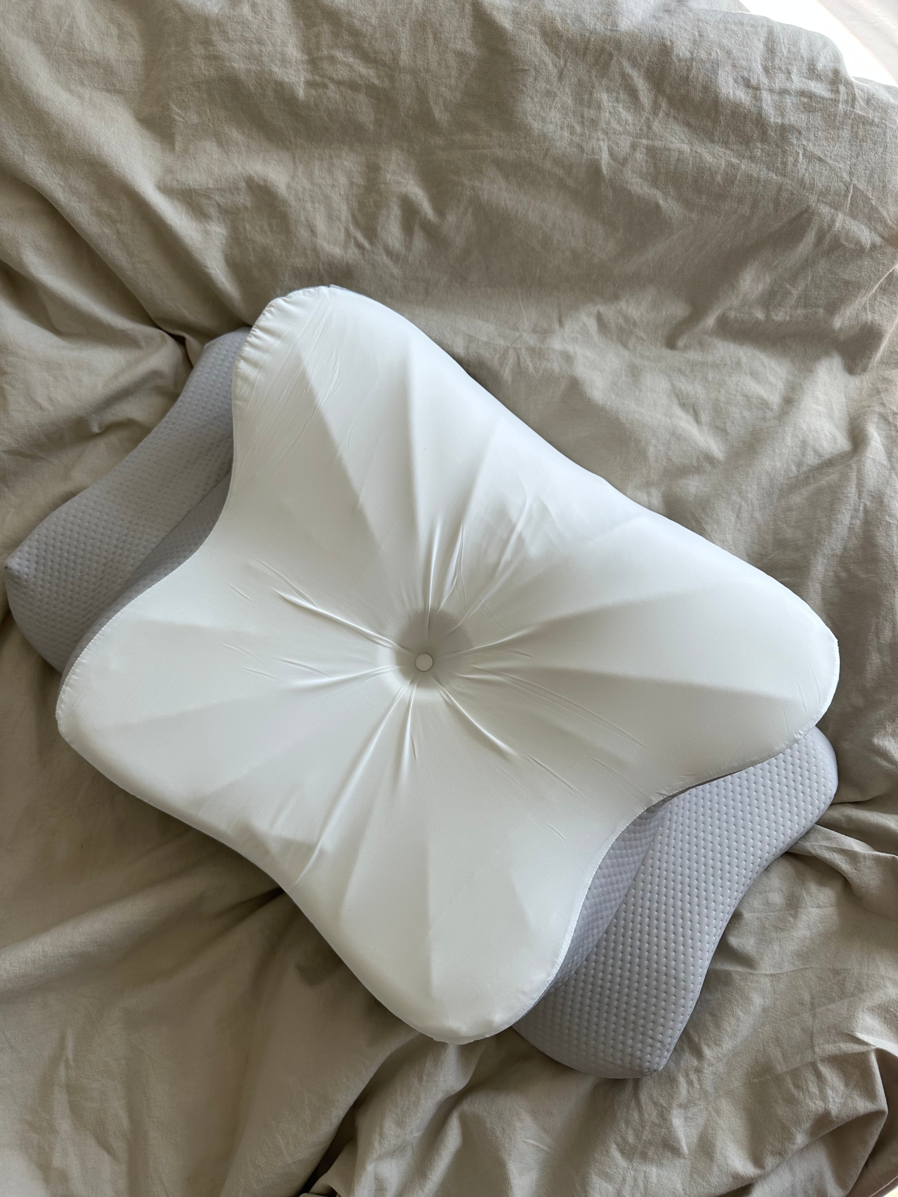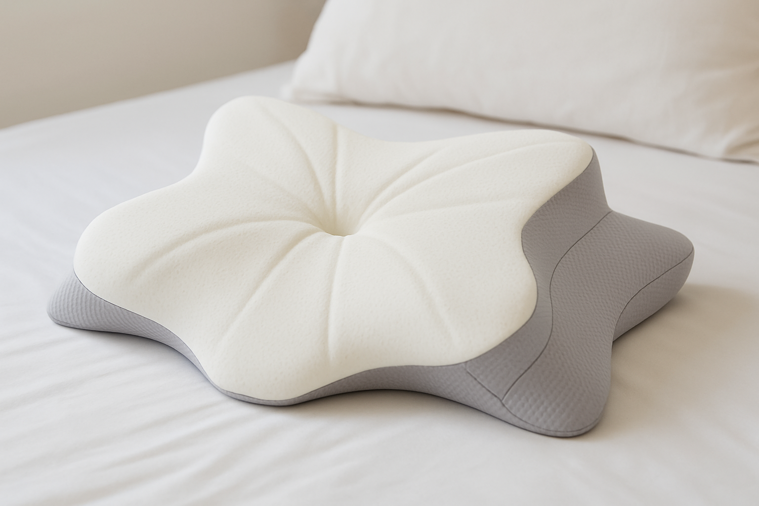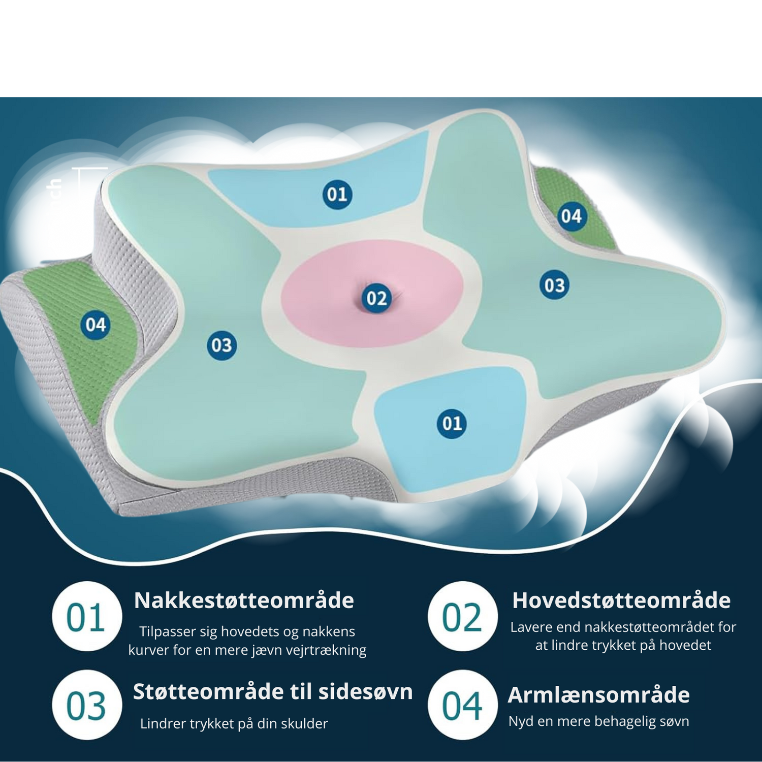 Memory foam med ergonomisk form reducerer spændinger og støtter nakke og rygsøjle.